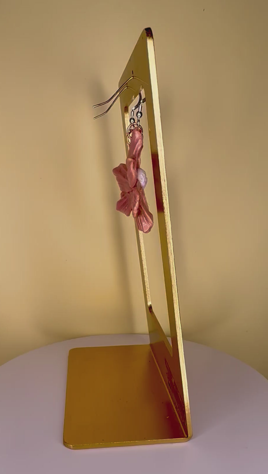 These handcrafted Half A Daisy Earrings feature a delicate floral design in peach and white with a subtle rose gold shimmer. Made from lightweight polymer clay and featuring elegant sterling silver findings, they offer a touch of luxury to any outfit. Perfect for those seeking sophisticated, floral-inspired style.